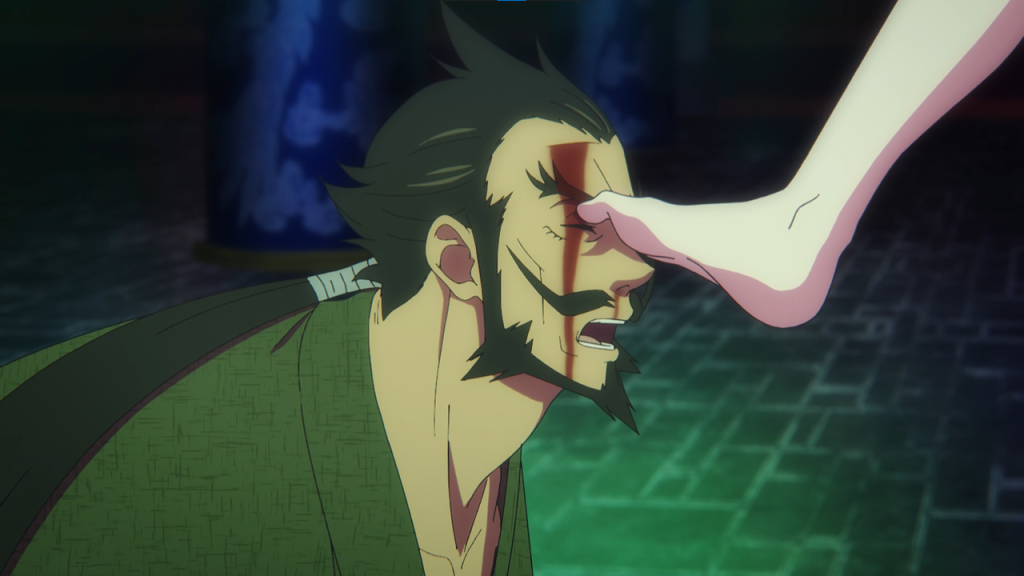 The battle in question focuses on the unlikely pair of Fuchi and Gantetsusai, the one-handed, larger-than-life swordsman and his keeper working for the Japanese Empire. While it might have seemed like the pair lucked out in facing down the happy-go-lucky villain known as Tao Fa, the Tensen member is anything but kind and gentle. Their movements prove that they are a formidable opponent, bulking up their body to a wild state while at the same time unleashing invisible energy attacks. It’s a wild encounter that is still underway as of the previous episode, though it’s hard to imagine how it could get any more grisly.