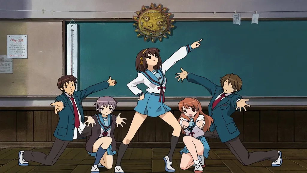 In Kyoto Animationโs The Melancholy of Haruhi Suzumiya, Kyon is forced by Haruhi Suzumiya to join the SOS Brigade, a club dedicated to finding the supernatural. What Haruhi doesnโt know, though, is that the other club members are the supernatural beings sheโs looking for, who are observing Haruhiโs godlike powers, all of which Haruhi has to be kept unaware of.