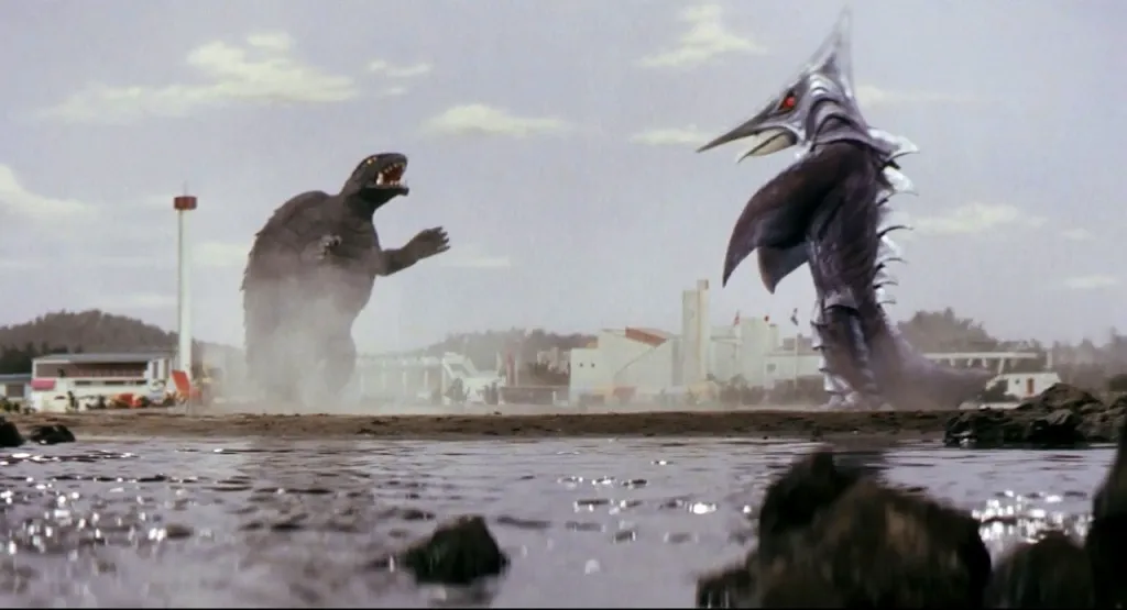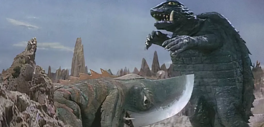 It’s yet another alien invasion plot, this time with the majority of the narrative following two boys (as was franchise tradition by this point) at a SeaWorld-esque park. The vast majority of the movie is plodding dialogue, with very little monster action. And, once the monster action does happen, it’s brief, and shows just how low on money Daiei was at the time. At least the design for the alien bird-shark was inspired in a Gigan from Godzilla kind of way.