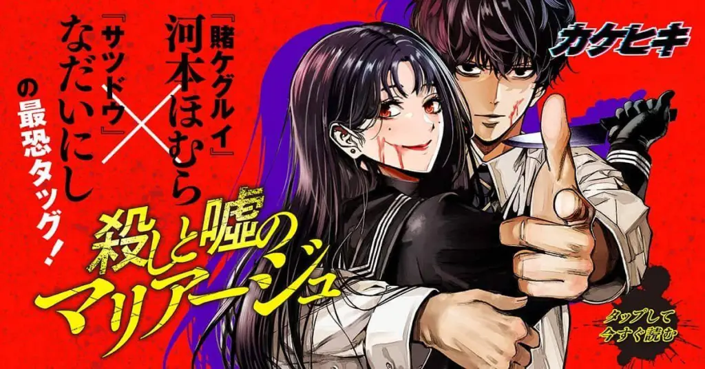 The new series expands on the one-shot Kawamoto wrote in 2024, Marriage of Murder and Lies. The one-shot was written by Kawamoto and art by Nadainishi. The manga is a twisted and violent romance series centering on a weak man being dragged into murdering people by an unknown beauty. The one-shot stars a male police officer who finds himself about to be murdered by a collective of criminals. At the last moment, a beautiful woman with long black hair appears before him. She violently murders his assailants, but before she can put her attention on him, the officer offers to help kill people together with her. From there, the woman brings the officer along with her on her murdering spree. The Bouryoku Banzai serialization will begin publishing in the Weekly Young Magazine issue 14/2025 on March 3rd.