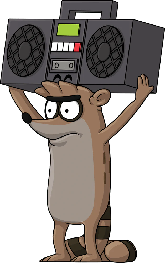 “While Moredcai’s snoozing, trust that Rigby will be nearby, ready to wake that bluebird up! Standing at 4.2 inches tall and holding a large grey boombox over his head with long thin arms, he’s totally unimpressed as a thick brow furrows over his round white eyes and a long nose stretches out from his face as a thick striped tail curls around his legs.”