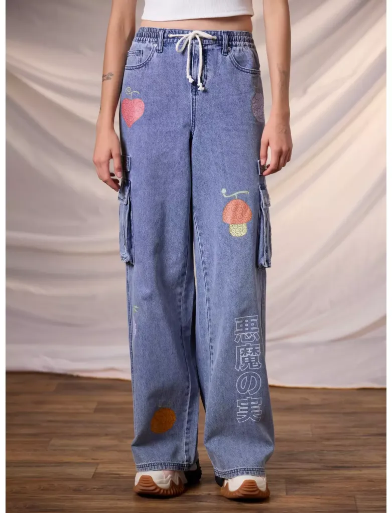 One Piece Devil Fruits Denim Cargo Pants / Plus Size