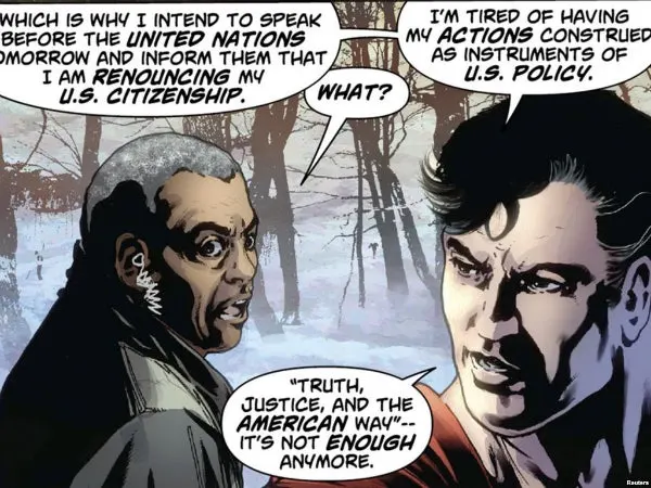 In the story “The Incident,” by David Goyer and Miguel Sepulveda, Superman, who once claimed he fought for “truth, justice and the American way,” takes a stand against American foreign policy and declares that he’s going to renounce his U.S. citizenship.