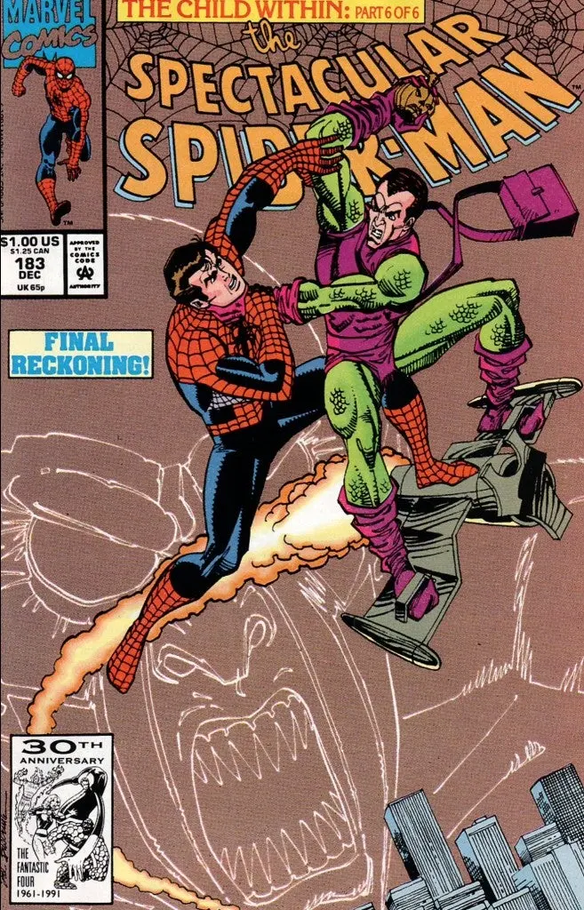 The first time Harry-Goblin fights Spider-Man, he proves to be a pushover. It wasn’t until more than 15 years later when J.M. DeMatteis scripted “The Child Within” arc for Spectacular Spider-Man, that Harry’s turn as the Goblin achieves legendary status. In this storyline, Harry, who has returned to his Goblin persona after being haunted by the ghost of his father, torments Peter by threatening to harm his family and to expose his secret identity as Spider-Man to the world. Peter is reluctant to fight Harry but is eventually coaxed into it before being trapped in a building that’s about to explode. In a final moment of nobility, Harry sacrifices himself for Peter and saves him, before dying himself at the end of Spectacular Spider-Man #200.