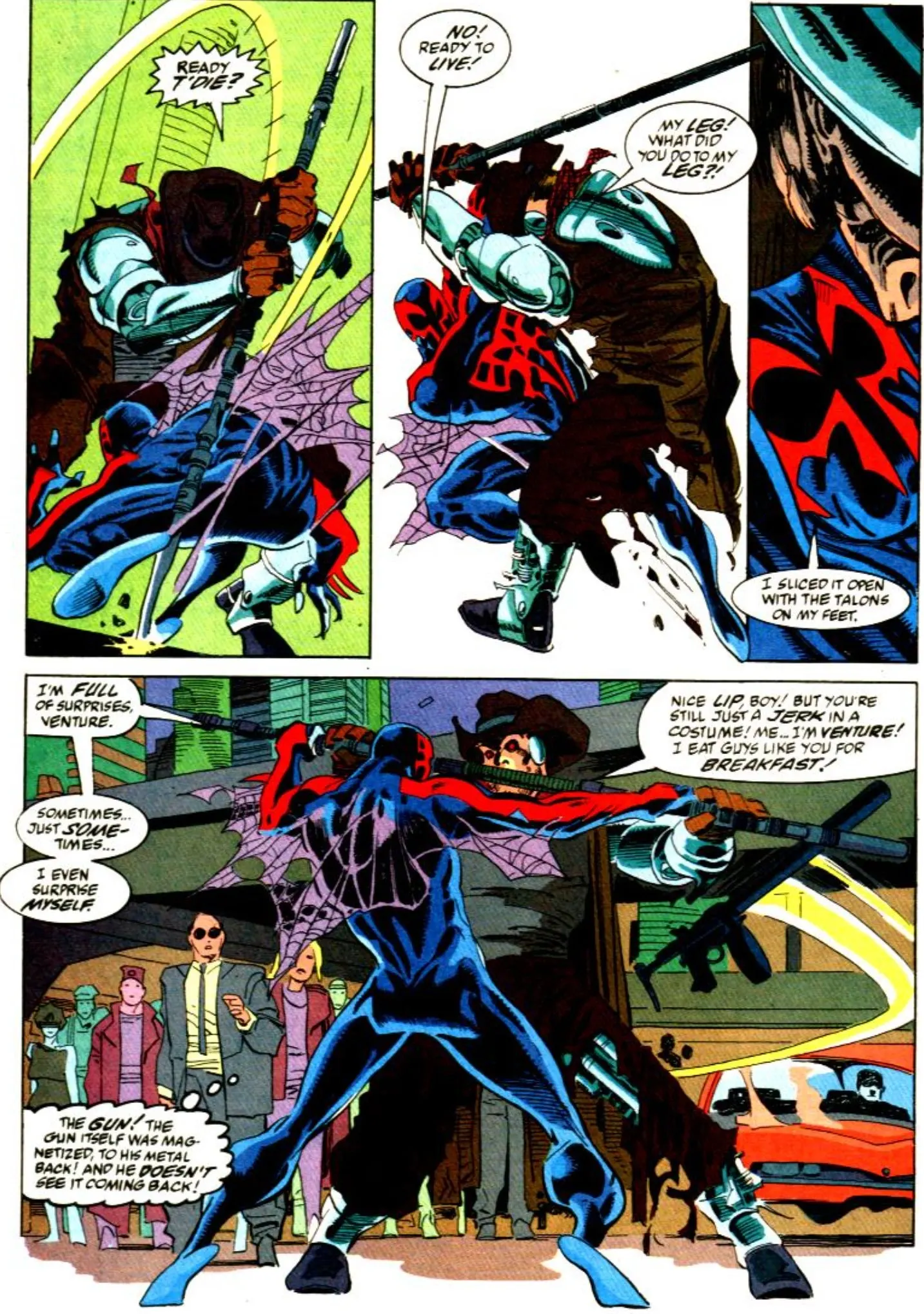 While this moment didn’t technically take place in Spider-Man 2099’s original run of 46 issues, it was published concurrently with the series, and is probably one of the better Spider-Man stories to be released during the character’s mid-90s doldrums.