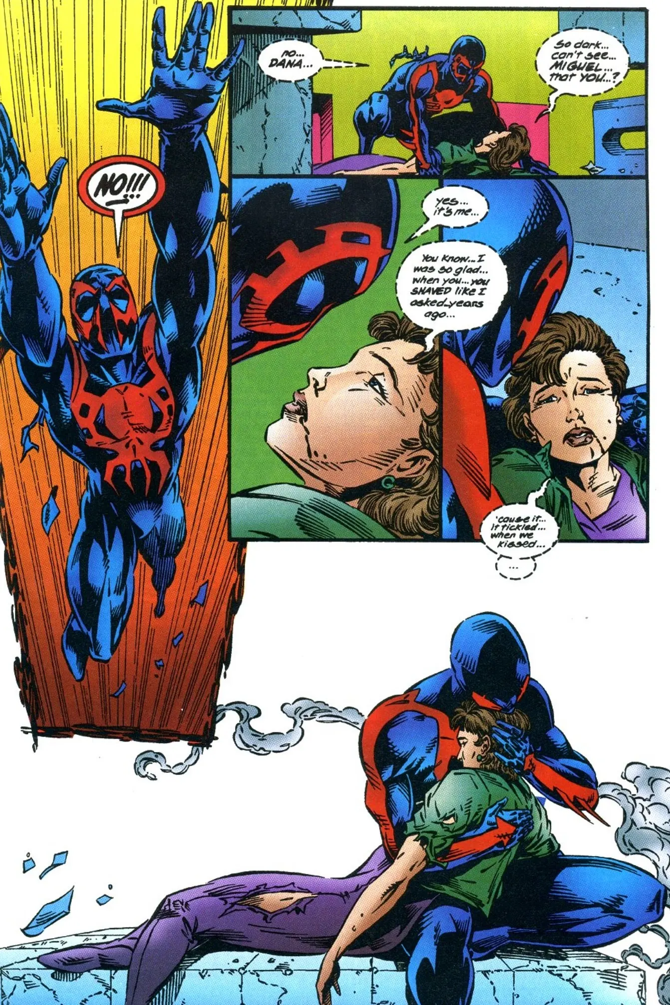 Taking note from the Stan Lee/John Romita Sr.-era of Peter having to choose between Gwen Stacy and Mary Jane Watson, Peter David incorporates a slow burn love triangle in Spider-Man 2099 that has an incredibly emotional and tragic payoff towards the final issues of the series.