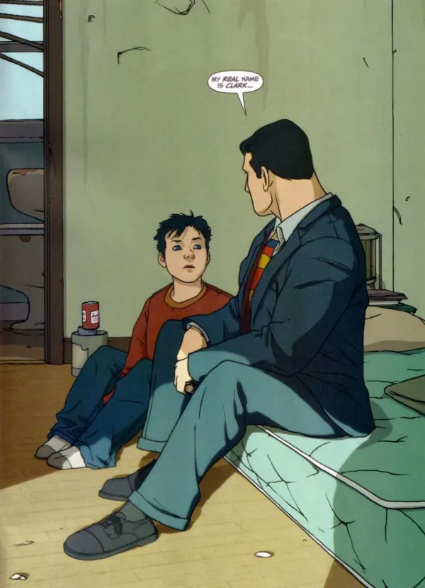 As was the case with the other World’s Greatest graphic novels, Dini and Ross focus more on real world/human issues in these stories. In Marvel/Shazam’s case, he reads a letter from a sick child in a hospital that he then goes to visit. At the hospital, he meets one child in a wheelchair who he believes is being beaten by his father. Marvel/Shazam attempts to help the child by threatening his father, but by the end of the story, the hero learns that he’s serving a higher purpose just by visiting these children and giving them hope.