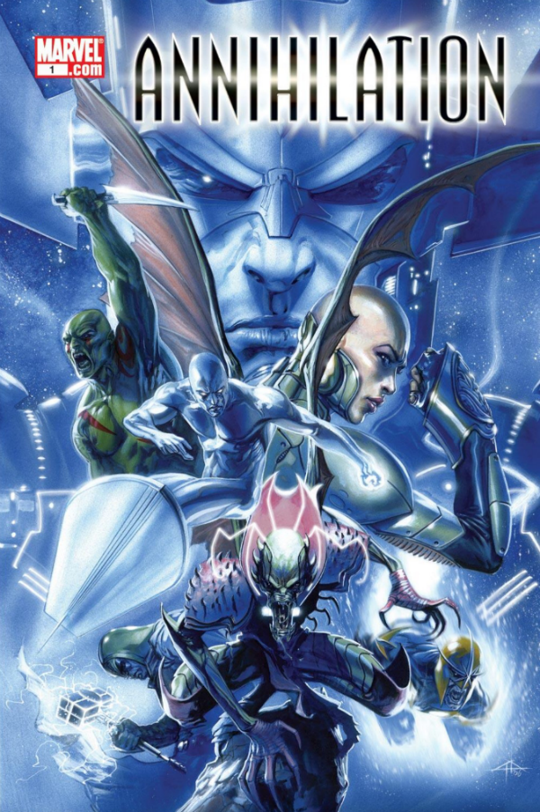 This 2006 miniseries by Keith Giffen and Andrea Di Vito (with a host of other crossovers and one shots) is largely responsible for the resurrection of Marvel’sย Cosmic line of stories featuring the likes of Nova, Thanos, Silver Surfer, Galactus, Peter “Star-Lord” Quill and Drax the Destroyer. Many of the characters featured and/or reintroduced in the mini and its spinoffs would go on to form Marvel’s reformed Guardians of the Galaxy team in 2008 โ the same team that is now getting the film treatment as part of Marvel’s expanding cinematic universe.