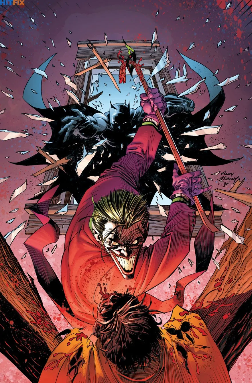 Today, DC Comics answers that question with Greg Capullo’s cover to “Batman #37” (courtesy of HitFix). As the cover image shows, Mr. J spent has spent his hiatus getting some much-needed plastic surgery on his ghastly face. The look isn’t terribly different from the “classic” Joker look. Joker’s trademark red lips seem a bit thinner than they’re usually rendered, and his hair is cropped tightly in a Pompadaour style cut. Apparently, The Joker must have gotten his hair cut in Brooklyn.