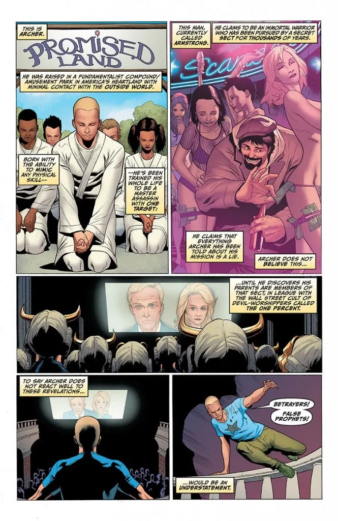 Valiant is proud to present an advance preview of Archer & Armstrong #2, the next of issue of critically acclaimed, smash hit series by New York Times best-selling creators Fred Van Lente and Clayton Henry!Archer & Armstrong have stumbled into a conspiracy that could crack history in half! True fact: behind each of the world’s secret societies is a much larger organization called The Sect and now their Wall Street chapter, The One Percent, must kill to keep their secret safe! As The One Percent’s merciless (401)k killers prepare to sacrifice young Obadiah Archer to their god of greed, it’s down to the immortal Armstrong to rescue his new partner and track down the rest of The Sect’s agents around the world. Long ago, one man recorded the clues that Archer & Armstrong will need to find them. But can they crack the Michelangelo Code in time?Find out for yourself on September 5th in Archer & Armstrong #2 – the second landmark chapter of the sold-out series that’s reaping praise from fans and critics worldwide. Finally, the internet has found something to agree on – Archer & Armstrong is a hit!