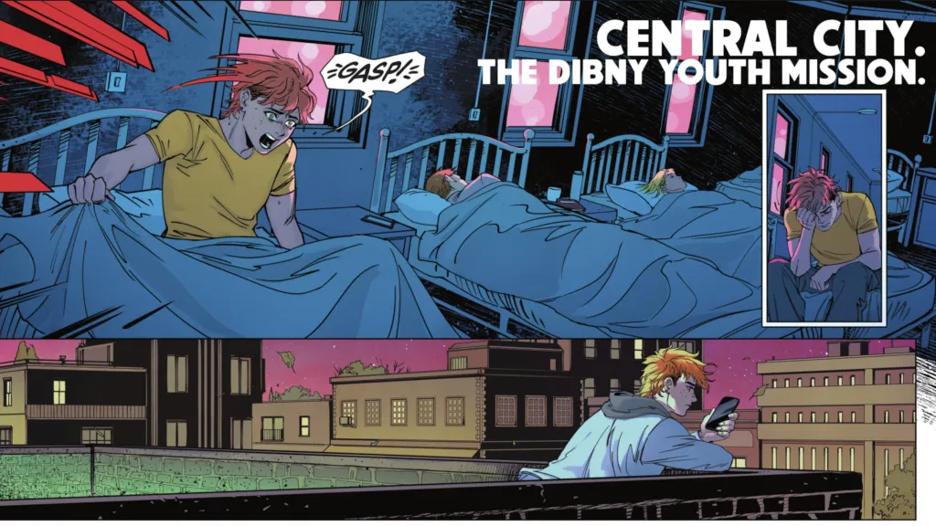 After losing his father last issue, Wally returned to the Dibny Mission, living there while he figures out how to find a way back to the Still Point. Ralph told Wally that he was here to support him through whatever was happening to him and let him know that Hunter Zolomon of the DEO came looking for him. While puzzling out his future, Linda approached Wally. She figured out he was the Flash and wanted to see what he could do. The teens ran around and hung out, hitting it off pretty well and confiding in each other about their trauma. Both had the responsibility of caring for a parent whom they eventually lost.