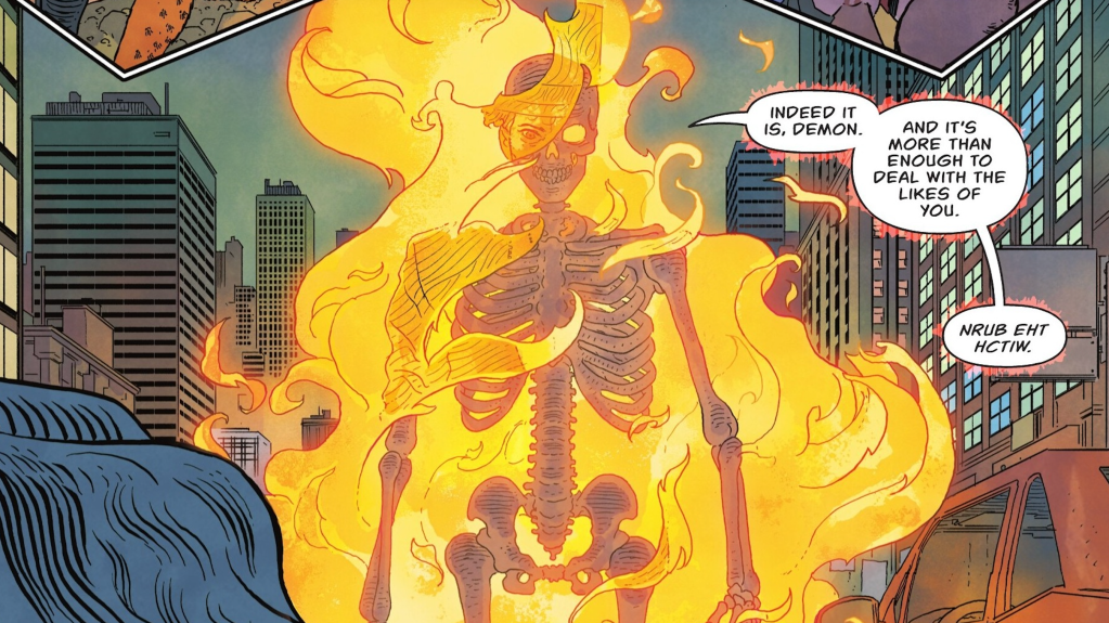 In yet another bid to destroy Wonder Woman, National Security Advisor Veronica Cale deployed the Suicide Squad. Among the teamโs members was none other than the Absolute Universeโs version of Zatanna, whose magic could rival Wonder Womanโs. However, after Zatanna escaped in Absolute Wonder Woman #17, Cale deployed an even stronger sorcerer who appeared as a terrifying, burning skeleton demon and who used his blood magic to destroy Wonder Womanโs magical arm. The following issue unveils that this nightmarish creature is none other than Zatannaโs father, the underrated Golden Age superhero Giovanni Zatara.