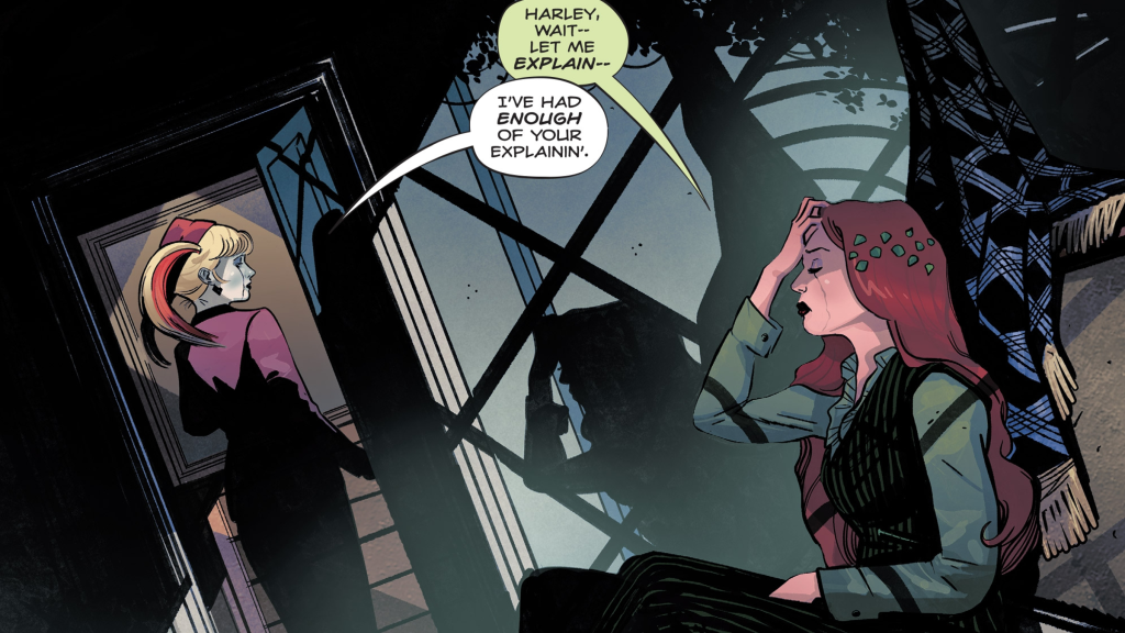 This might be controversial, but Iโ€™m not exactly opposed to Poison Ivy and Harley Quinn breaking up. Stories need conflict, and under the right circumstances, exploring how an intense job like being mayor affects a relationship would have been an interesting direction. But the way that itโ€™s done here seems more to write Harley off as quickly as possible, based on the thinnest reasoning. I could understand it if Ivyโ€™s new job caused her to ignore Harley or cause an issue if Harley got in serious trouble. But ditching Harley over optics just doesnโ€™t feel right.