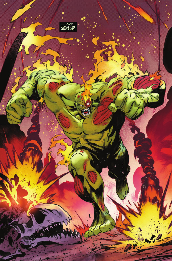 Case in point, the new series Hulk: Smash Everything by Ryan North and Vincenzo Carratรน. This series was designed to put the idea of Hulk being the strongest to the test. The Hulk was manipulated by his old adversary, the Leader, who sent him after Doctor Strange so that the Leader could steal from Strangeโs Sanctum Sanctorum. However, Strange was able to redirect Hulkโs anger back towards the Leader. But the Leader was several steps ahead and sent the Hulk several million years into the past, right before one of the worst extinction events in history.