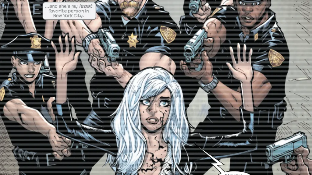 The crime scene was unbelievably clean, and the guards confirmed that they didn’t see anyone but Black Cat enter the building. Sue was ready to give up on the case, half out of her frustration with Black Cat, but Alicia asked Sue if she had ever given the other woman a chance. Sue admitted that she didn’t, and resolved to keep looking for answers instead of reasons to hate Felicia. Eventually, Sue realized that the timeline of events didn’t match up and caught the true murderer.