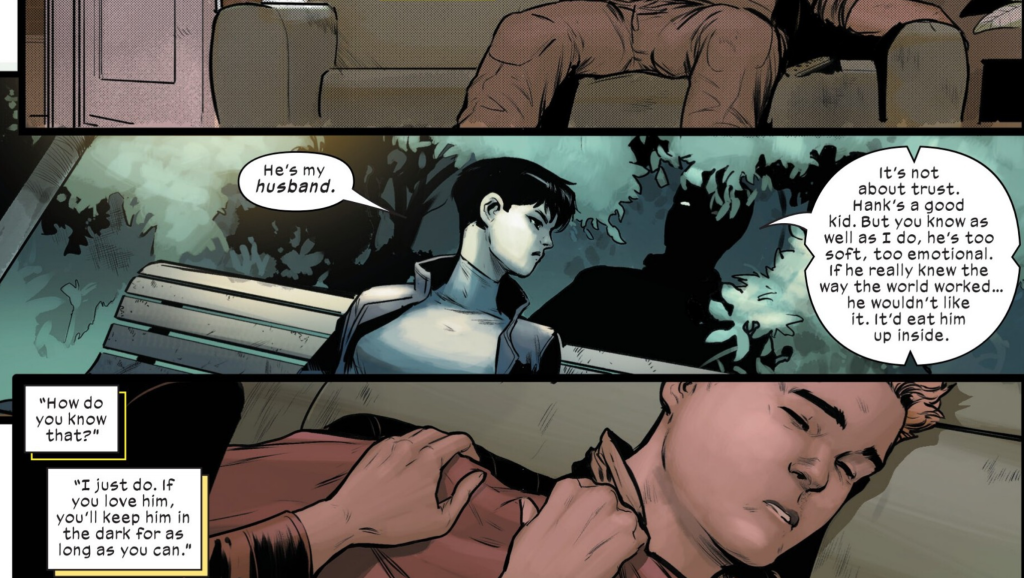 In the main Earth-616 Universe, Hank uses his genius to create the size-altering Pym Particles that give him and his assistant Janet the power to become the Ant-Man and Wasp superhero duo who eventually get married. However, in Earth-6160, the Maker causes a car crash in which Hank suffers extensive brain damage, ensuring that he wouldnโt be able to complete his Pym Particle research. Hank and Janet instead are forced by their financial circumstances to become common exterminators. It was only when the time-travelling hero Iron Lad arrived that the couple received their size-altering suits and became superheroes. However, Janetโs character changes in ways that make her a far more morally gray hero than any prior incarnation.