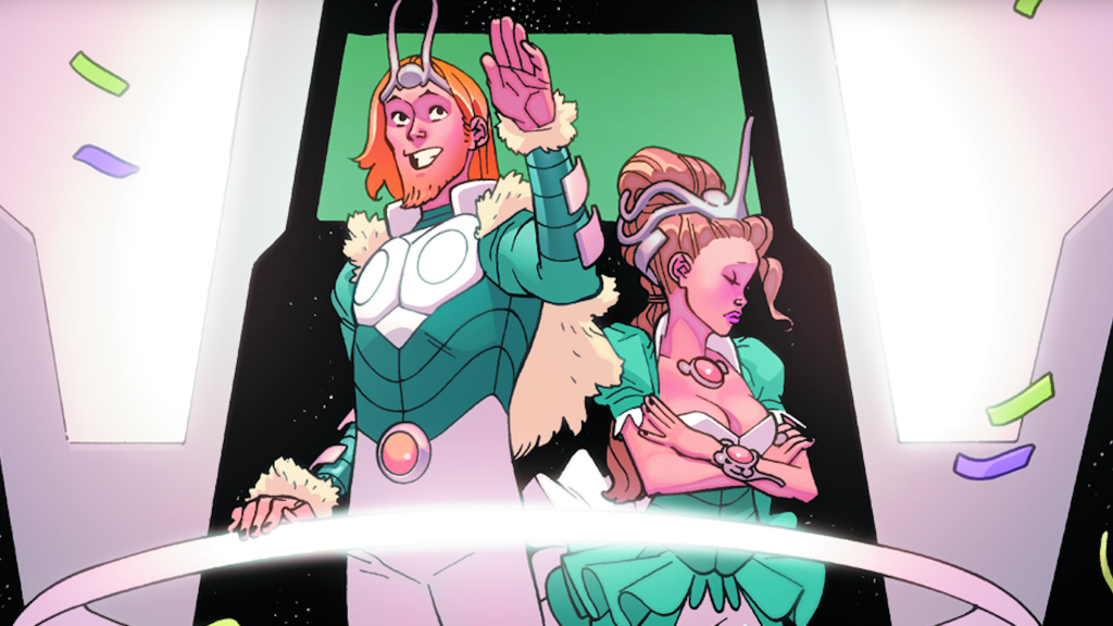 Running from issues #92 to #96, โWhatโs Happening?โ focuses on the heroes Robot and Monster Girl. In a previous storyline, Robot and Monster Girl went to the Flaxan Dimension to stop their invasions once and for all. โWhatโs Happening?โ focuses on their time with the Flaxans and the aftermath. Since time moves faster in this dimension, Robot and Monster Girl not only became the leaders of the Flaxans but also ruled for over 500 years, despite aging only 12. In that time, Robot temporarily became a tyrant, and Monster Girl joined a rebellion against him. When they return to Earth, the past catches up with them as a mysterious Flaxan arrives for revenge. Itโs a shocking story full of twists that fundamentally changed both heroes for better and worse.