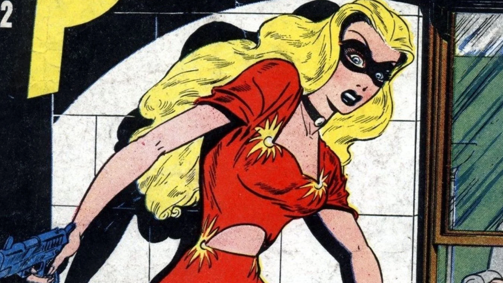 Debuting in 1946, Louise Grant, aka Blonde Phantom, was one of Marvel Comics’ earliest female superheroes. Initially a mere secretary for a private eye named Mark Mason, Louise was enamored with her employer’s adventurous escapades and eventually decided to become a detective herself. Donning a domino mask and red dress, Louise became the vigilante detective Blonde Phantom. With her skill in firearms, martial arts, and deductive reasoning, Blonde Phantom was feared by New York’s criminal underbelly. She would go on to be recruited into Nick Fury’s Avengers 1959 team to hunt Nazis. Still without superpowers, Blonde Phantom eventually retired and settled down with her husband, Mark. With her determination and skill, Blonde Phantom helped pave the way for many future heroines.