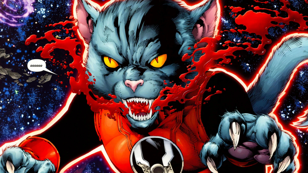 At first glance, a cute little cat with the rage-fueled Red Lanterns seems too silly to be taken seriously. However, Dex-Starrโs origin shows exactly how such a small animal could feel so much hate. Originally a kitten named Dexter, he was adopted by a loving woman. After witnessing his ownerโs brutal murder, the young Dexter had to live on the streets. Things only got worse for the kitten when a group of thugs started abusing him. To finish Dexter off, the thugs put him in a bag and tossed him over the Brooklyn Bridge. But before he hit the water, Dexterโs rage caused a Red Lantern Ring to fly to him. After slaughtering his abusers, Dex-Starr became one of the most fearsome Red Lanterns in the universe.