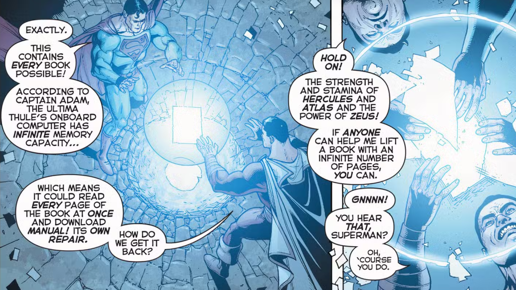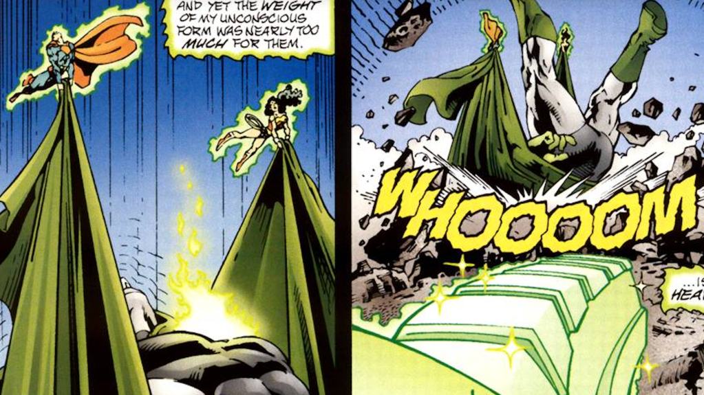 There are few things in the universe more powerful than a black hole, as the gravitational pull is so strong that not even light can escape it. In JLA #7, while Superman and the rest of the Justice League were on a mission, the Atom discovered a device that contained a mini-black hole. When the device broke, the release of mini-black hole threatened it to uncontrollably grow, consuming the solar system and beyond. Acting fast, Superman grabbed it and held on as tight as he could so it couldnโt expand. As he struggled to contain its unbelievable power, Superman flew as quickly as possible to the nearest wormhole and chucked the mini-black hole in so that it couldnโt hurt anyone.
