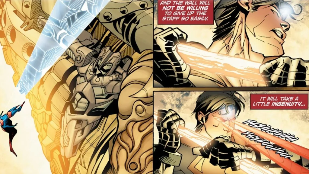 Existing at the boundaries of the DC Multiverse, the Source Wall is an impenetrable barrier that, if anyone touched it, would become trapped forever. The Source Wall has imprisoned many omnipotent gods. Even Perpetua, the entity that created the infinite multiverse, was trapped for billions of years within the Source Wall. In the Superman/Batman storyline โTorment,โ the Man of Steel is brainwashed by Darkseidโs minion Desaad to obtain the staff of the New God Highfather, which was lodged in the Source Wall. Desaad himself wasnโt sure if Superman could get the staff. Yet, through a combination of his strength and heat-vision, the mind-controlled Man of Steel overpowered the Source Wall and wrestled free Highfatherโs staff.