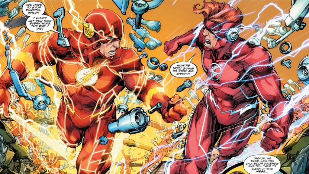 During the New 52 reboot, Wally and his children, Irey and Jai, were seemingly erased from existence. And although Wally eventually made his way back home, his children were still missing. Overcome with an obsession to find them, Wally is manipulated by the villain Zoom in โ€œFlash War.โ€ Zoom convinces Wally that his kids are stuck in the Speed Force and that he must destroy it to free them. When Barry tries to stop Wally, the two engage in a race that takes them across the world countless times. As they continued to accelerate, their energy output threatens to tear apart DCโ€™s infinite multiverse. By the end, Wally won the race against Barry, and thankfully, neither the Speed Force nor the multiverse was destroyed.