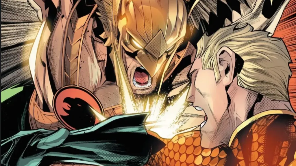 The King of the Seas and the reincarnating winged warrior fought to prove that the two of them deserve far more love than they get. Hawkman and Aquaman are two most often remembered by fans for being the butt of the joke, but they are far cooler and stronger than most give them credit for. Case in point, this fight. Both men are heavy hitters, with strength that lets them at least hurt Superman and Wonder Woman, and they are about equal in power. Hawkman took the early advantage, as, since they fought on land, his wings let him completely control the air and fight in a way Arthur couldnโt respond to.
