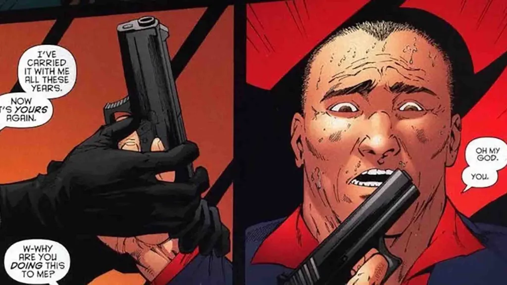 In the โ€œJoe Chill in Hellโ€ story, Batman is shot by Bat-Devil and goes into cardiac arrest, prompting him to have various visions and hallucinations. One such hallucination sees Batman terrorizing Joe Chill every night for a month, making the man more and more unsettled in the process. On a final visit, Batman gives Chill the very gun used to kill the Waynes. It prompts the man to realize who Batman really is and he takes the gun, with it being implied that Chill uses it to kill himself โ€” meaning that Batman terrorized the man into suicide. While the story is a โ€œwhat-ifโ€ sort of situation, it was very out of character for Batman and a controversial story for many fans.