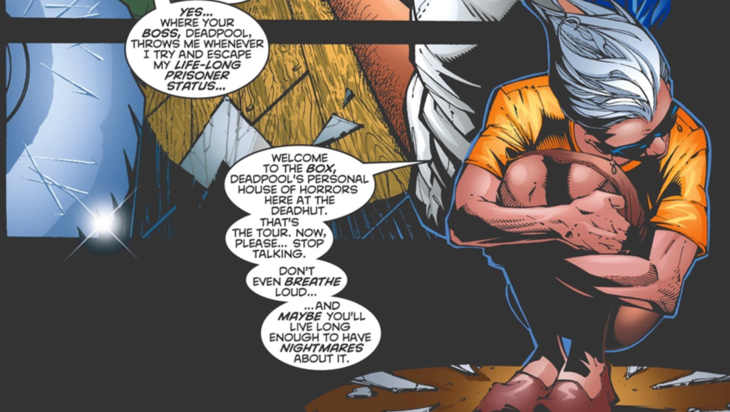 The movie trilogy portrays Deadpool and his roommate, Blind Al, as having an odd yet close friendship. However, in the comics, the elderly Blind Al isnโt Deadpoolโs roommate, but his prisoner. Deadpool would regularly bully her while forcing her to cook and clean for him. Deadpool would also routinely lock Blind Al in a torture room. If Blind Al even thinks about escaping, Deadpool tortures her. Heโll also kill anyone who tries to help Blind Al escape from her tormentor. Although Blind Al acts like these things donโt bother her, Deadpool’s imprisonment and abuse of a blind old woman for fun is sick and twisted.