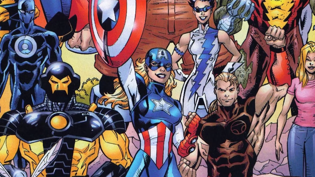 On Earth-982, the Earth’s Mightiest Heroes had retired, paving the way for their sons, daughters, and proteges to take up their mantles and continue their heroic legacies. After battling some trolls, several next-generation heroes decided to become the new Avengers, nicknamed A-Next. The other original members included Thunderstrike’s son Kevin; Juggernaut’s son J2; Ant-Man and Wasp’s daughter Stinger; and Iron Man’s android replacement Mainframe. Over time, many other heroes joined, like American Dream, Saberclaw, Thena, and Bluestreak. Even Spider-Man’s daughter, May “Mayday” Parker, aka Spider-Woman, joined the team. A-Next is a shining beacon that shows that the Avengers’ legacy will continue long into the future.