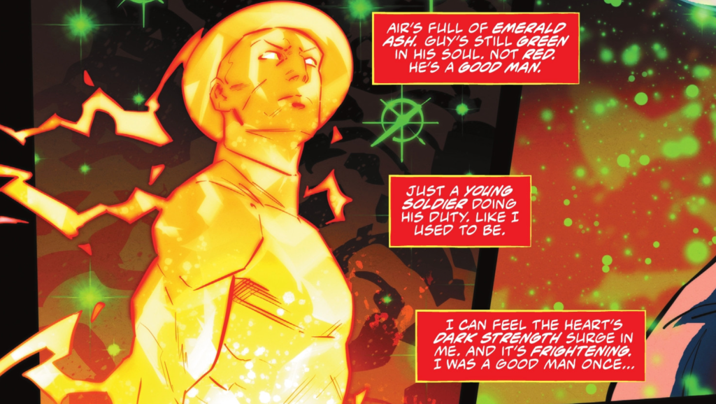 Like all the top speedsters in DC Comics, Jay Garrick, the original Flash, draws his power from the Speed Force, which is a cosmic energy field from which all motion originates. In the second round against Guy Gardner, Jay became the Speed Force incarnate. As a being comprised of pure Speed Force energy, he was invisible and omnipresent. He could strike Guy from any direction with lightning bolts. He can also sense the distress of Wally West across time and space, further motivating him to win. In this incarnation, Jay emerges victorious in the second round after he atomizes Guy. Although Jay ultimately loses in the third round, his Speed Force form is the strongest version of the Golden Age hero ever shown.