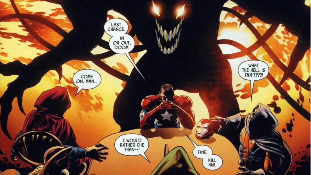 The Illuminati mindwiping the Cap was only the beginning of them keeping the secret of the Incursions. Iron Man, Mr. Fantastic, Black Panther, Black Bolt, Namor, and the Beast lied to everyone, keeping the whole thing a secret form their teammates in the Avengers, Fantastic Four, X-Men, SHIELD, and the entire world. The only person who was able to figure it out was Doctor Doom (obviously; none rival Doom), and after Original Sin revealed the truth, it broke the Avengers in twain. The worst part about it is that if they would have asked for help from their allies and enemies, they could have come up with a solution to the problem. Instead, they made the decision for the world, which would lead to the destruction of everything and Doom saving the remains of the multiverse.