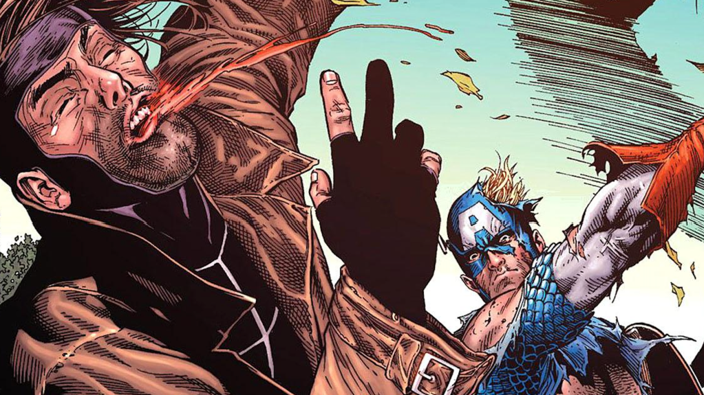 During the events of Avengers vs X-Men, various members of Earthโs Mightiest Heroes and the Children of the Atom duke it out to determine the fate of mutantkind and Earth. In AvX: Versus #2, Captain America battles the X-Man Gambit, who can charge inorganic objects with energy to make them explode. The battle is long and hard, with Gambit using Captain Americaโs own shield against him. Even when Captain America subdues Gambit, the mutant pulls out one last trick by detonating the Avengerโs costume. Unfortunately for Gambit, all this does is make Captain America angry, as he finishes off the X-Man with a brutal uppercut.