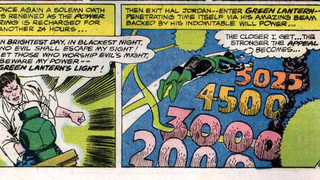 Green Lantern and the Flash have always been one of DC’s best duos, and apparently, that means occasionally borrowing powers from each other. In this case, that includes Green Lantern borrowing Flash’s ability to phase through matter. This ability was first demonstrated in The Brave and the Bold #59, where Hal phased through a ceiling as if it weren’t there. This power does not come up often and can be safely assumed to be another power lost to the Silver Age, but given that it was used sparingly even then, it’s likely that the ability to phase also relies upon the density of the material and the user’s strength of will.