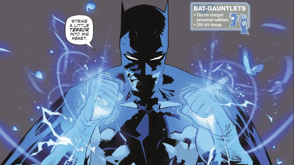 First on the chopping block is a personal favorite of mine, the Bat-Gauntlets. In Matt Fractionโs run on Batman (2025), they have been reimagined as electrically charged gloves, though other interpretations have seen Batman incorporate metal, blades, and other deterrents. These gauntlets work so well because they take something Batman is already incredible at, enacting diabolical violence with his fists, and supercharge it. Seeing Batman trade blows with his enemies is endlessly exciting, and gadgets like these let him punch even higher above his weight class than he already does. Theyโre vastly underrated, but always present and ready to bash some criminal faces in.