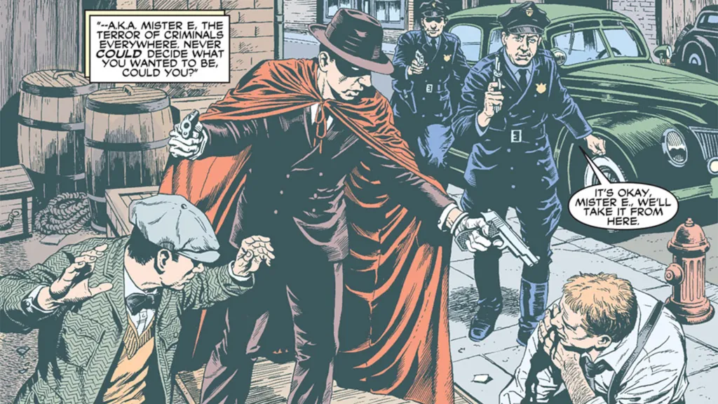Mister E was Victor J. Goldstein, a wealthy sportsman and businessman who changed his name to Victor Jay to hide his Jewish heritage in an anti-semetic world. He grew bored with his lavish lifestyle and decided to fight crime to fill that void, with his archenemy being a man called the Vampire, who unleashed a gas that made people’s hearts explode. Much like Phantom Bullet, Mister E only appeared in a single issue before he disappeared from comics. However, he was one of the stars of the Twelve, a series which saw twelve Golden Age heroes frozen during WWII and awoken in the modern day, ala Captain America.