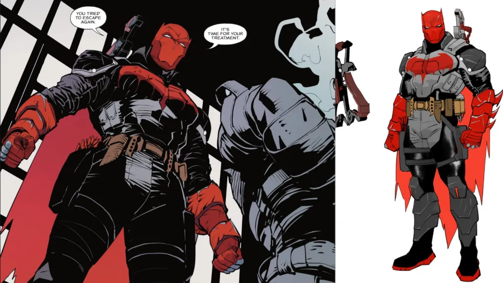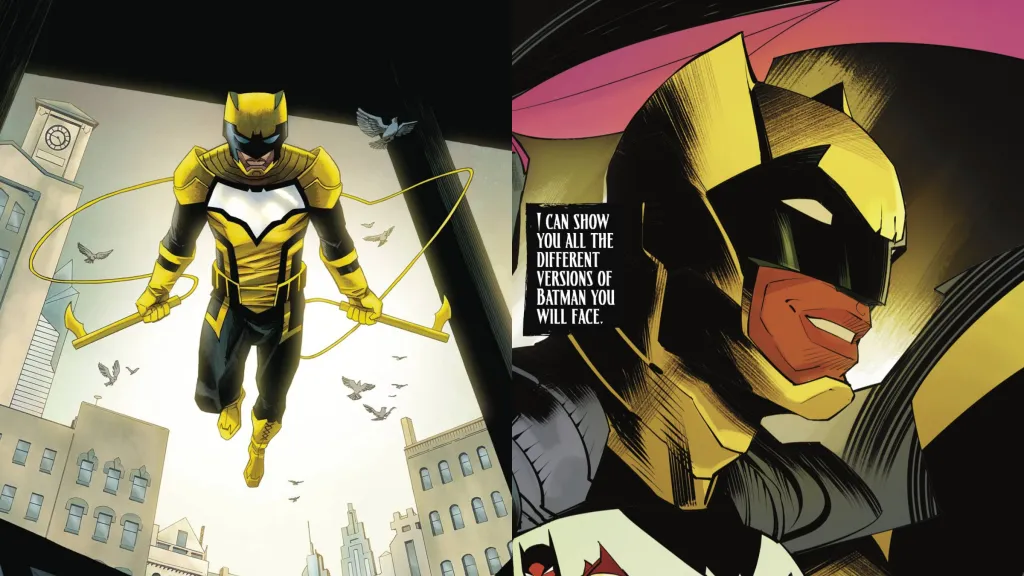 Jean-Paul has been Batman once before, and this suit is a beautiful callback to his time as the Dark Knight. The massive golden chest-armor, clawed gauntlets, and endless sharp edges all scream the height of the ‘90s anti-hero boom, which Jean-Paul’s stint as Batman embodied. This suit would never work for the regular Batman, but for Jean-Paul, it’s a fantastic callback to his descent into madness and over-the-top violence while combining that with his heroic modern perspective. Still, as fun as this suit is, it can’t work for Batman, as was always the point with his suits.