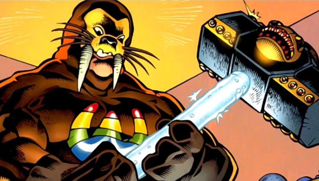 Remarkably, not one but two criminals thought that โKangarooโ was a good supervillain name. The first Kangaroo was an Australian former kickboxer named Frank Oliver. Paul lived and ate alongside wild kangaroos, learning how to jump freakish heights, which he later used to become a criminal. After Frank died, another Kangaroo hopped up to take on the mantle: Brian Hibbs. Brian wears a suit of armor designed to look like a kangaroo, complete with a tail, big ears, and a pouch. Unlike most kangaroos, he tucks a cannon inside his pouch. Hilariously, when Brian tried to use his pouch-cannon on Spider-Man, the Wall-Crawler webbed it up, and it literally blew up in the villainโs face.