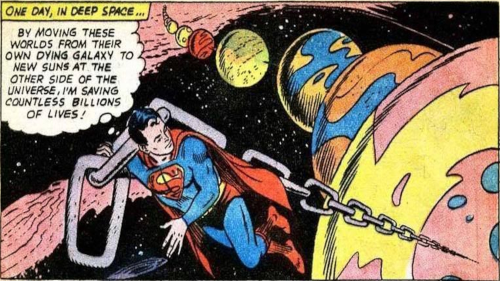 The above image is of him casually hauling planets, but heโs also done impossible feats like destroying a solar system with a sneeze in Action Comics #273, and vibrate every living being into a different reality all at once, safely, in Superman #248. There is no limit to what Superman could do back in the day, he was a dream brought to life. Yet even this version of the character has some limits in some capacity, which the other two most certainly surpass.