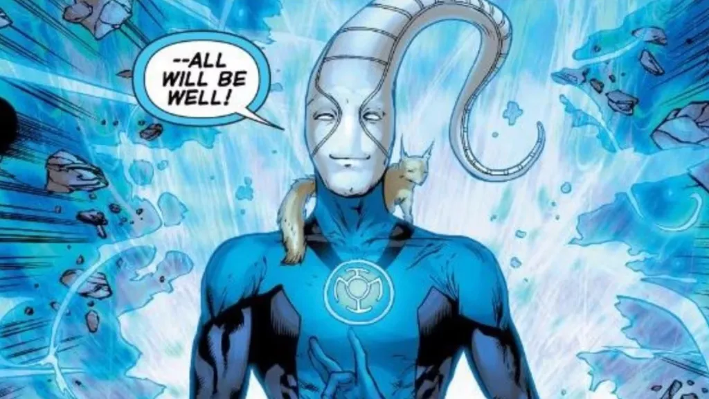 In 2008, a new Lantern Corps shone its light across a universe that needed hope. Two exiled Guardians of the Universe, Ganthet and Sayd, founded the Blue Lantern Corps. They forged the first Blue Lantern ring, and it found its way to Broโdee Walker, aka Saint Walker.ย When his planetโs sun began to die,ย everything on his world began to die with it.ย Desperate to find the savior who had been prophesied to appear on Mount Helious, heย climbed to the top ofย theย mountain, butย upon arriving, no one was there. Broโdeeโs faith was crushed, but he resolvedย to become the saviorย his people needed. He became a beacon of hope for his planet, and their sun was rejuvenated, turning blue. The Blue Lantern ring chose Broโdee to be the first member of the new Blue Lantern Corps. Powered by hope, Saint Walker and the rest of the Corps are pacifists who wield their rings to protect the innocent while also giving nearby Green Lanterns a power boost.ย ย