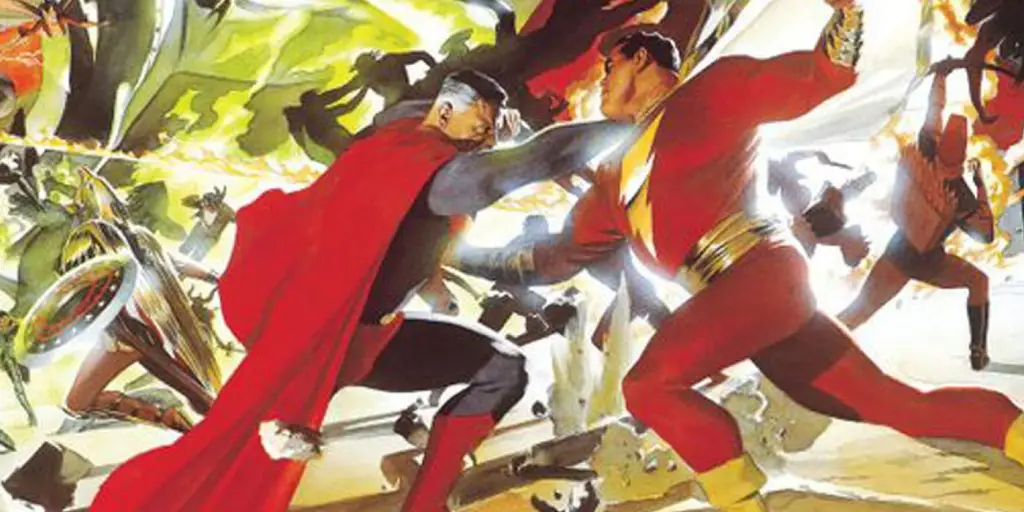 The only thing superhero aficionados love as much as seeing heroes form teams is seeing heroes duke it out. Kingdom Come tells just that kind of story in its portrayal of a future in which DC’s superhero community has become fractured and factionalized. The brawl of Superman and Captain Marvel (the name Shazam was still going by at the time in the comics) in particular is an epic smackdown that hits with all the power one would expect from two metahumans of their strength, with the ever sinister Lex Luthor pulling the strings on Captain Marvel’s sinister turn.