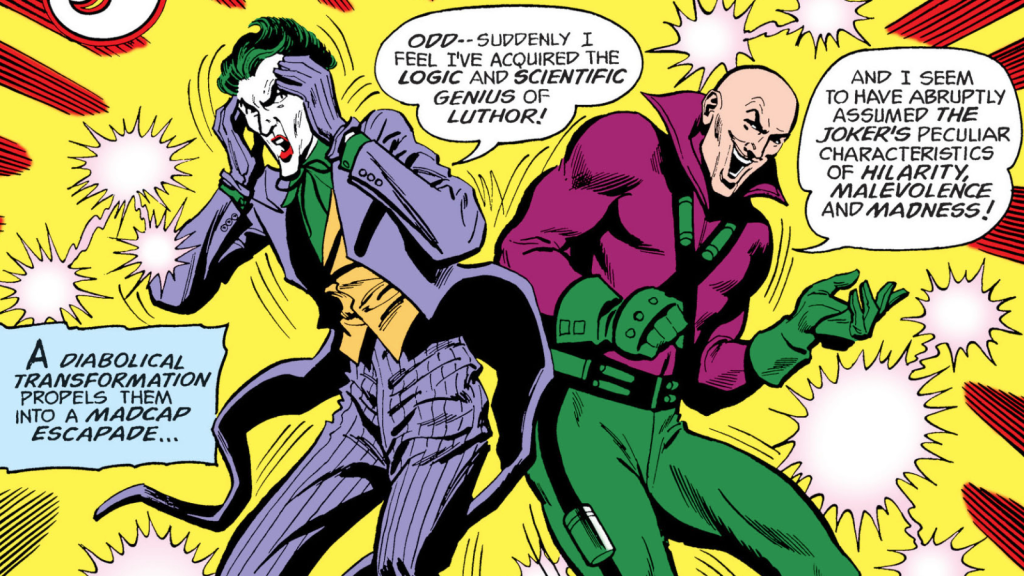 Luthorโs point is demonstrated in Elliot S. Maggin and Irv Novickโs The Joker (1976) #7. In the story, Luthor and the Joker accidentally switch personalities. While the Joker finds having a more rational perspective somewhat dull, he recognizes that it increases his effectiveness. Conversely, Luthor despises the Jokerโs impulsiveness and tendency to โad-lib.โ Furthermore, while the Jokerโs deviant mindset allows him to devise a master plan for world domination, the plan ultimately proves unworkable because the insanity that’s required to pull it off can only come from a mind so unbound that it would be hard for him to operate in a rational world.
