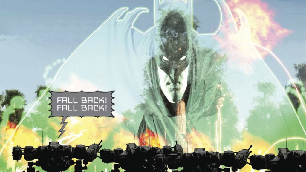 This beautiful tribute to Gothamโs symbol of fear came about in one of the DC/Hanna-Barbera crossovers, Green Lantern/Space Ghost. After responding to a distress signal took him to a different dimension, Hal Jordan got into a fight with Larfleeze, but Space Ghost arrived and thought the Green Lantern was a villain himself. Hal was knocked down planetside, where he was surrounded by the heavily-armed local militia. He was desperate to find a way out without hurting anyone due to this obvious misunderstanding, so he tried to think of what he could use to scare everyone off. He dug deep to imagine the most terrifying thing heโs ever seen that could scare you off no matter what universe you were in. Having battled against agents of Death and been possessed by the literal Entity of Fear, Hal naturally decided his only option was a giant Batman construct. And hey, it worked! Even people in an entirely different universe know not to mess with Batman.