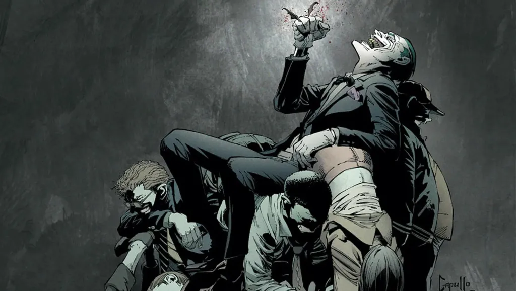 While maybe not the most colorful costume on our list thus far, Greg Capullo’s design for the Joker in “Batman: Endgame” is genuinely great. Serving as the Joker’s costume for the back half of the New 52, taking all the bright colors away from Joker and giving him a simple tuxedo was a bold move for the clown we’re all terrified of. It marked the shift that he was back in the status quo as the “classic” Joker but also signaled a darker twist as well as called back to his original silent film grandfather of Conrad Veidt in the film The Man Who Laughs.