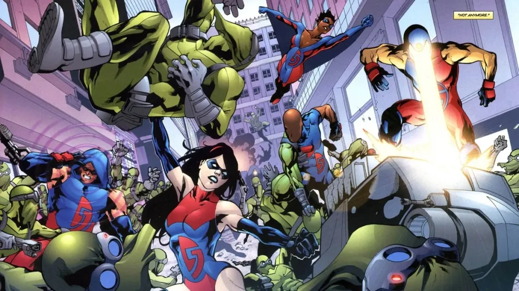 Set in theย Jupiterโs Legacyย universe, the Union were the primary defenders of Earth for decades. God-like aliens gave the six members of the Union their powers after they passed various challenges on a remote island. The teamโs leader, Utopian, had powers comparable to Superman. Utopian was strong enough to generate earthquakes with a single punch. The other members, Brain-Wave, Lady Liberty, Skyfox, Flare, and Blue-Bolt, all shared similar levels of power to the Utopian. Some can move faster than light, while others can throw entire buildings with their mind. However, the Unionโs god-like powers were not enough to withstand one of its own members. The telepathic Brain-Wave wasnโt content with just saving the world, and instead, he wanted to rule it. By manipulating many of the Unionโs offspring, Brain-Wave led a super-powered revolution that claimed the lives of most of his teammates. Chloe Sampson, the Utopianโs daughter, was one of the few superhero children who didnโt turn evil. She led an army of reformed villains against Brain-Wave and defeated the tyrant. Although the Union fell, they showed some of the most incredible feats of power amongst Image Comicsโ superheroes while they were alive.ย