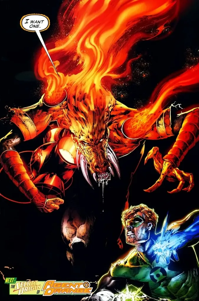 In the main DC Universe there is only one Orange Lantern, and one Orange Ring. It possesses its wielder and infects them with pure greed, to the point where they cannot bear to give up anything, and everyone the wielder kills is absorbed into the lantern. While we all love Larfleeze, the Absolute Universe could take this concept and make it even more horrifying. Instead of one ring or having a wielder, the Absolute Orange Lantern could very well be more like a plague. It spreads out from a central battery, infecting entire planets with orange light, until it eventually absorbs them all and nothing is left except empty space. Then, the lantern would move on to the next planet to keep eating. It would be gluttony to the core. Perhaps it wouldn’t even have a wielder at all, and instead manifests a visage of the people its absorbed in order to defend itself, if under attack.
