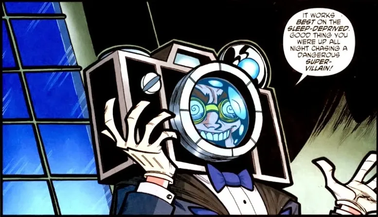 Some of the most twisted villains enjoy photographing their crimes as mementos. But instead of just using a hand-held camera or phone, Harry Simms made his whole helmet into a camera. Assuming the name Mr. Camera, Simms is a criminal whose gimmick is taking pictures of his crimes. But heโs not very good at it. He took photos of Batman and Robin without their masks, intending to blackmail them, but the images came out too blurry. Indeed, most of Mr. Cameraโs pictures are close-ups of Batmanโs fist heading straight for his face.