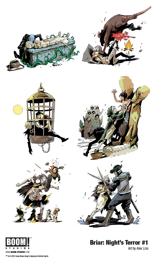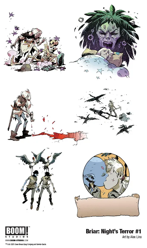 As you can see in the images, Briar: Night’s Terror #1 features main cover art by series artist Lins along with variants by Filipe Andrade, Morgan Beem, Becky Cloonan, and Tyler Crook.