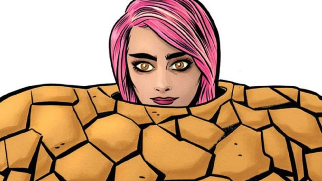 Some of the best The Thing art of the 21st century doesn’t even include Ben Grimm himself, but rather Darla Deering / Miss Thing. The pop star-turned-unlikely superhero of 2012’s FF run sported The Thing’s rocky body with her human head, resulting in some hilarious and goofy images.
