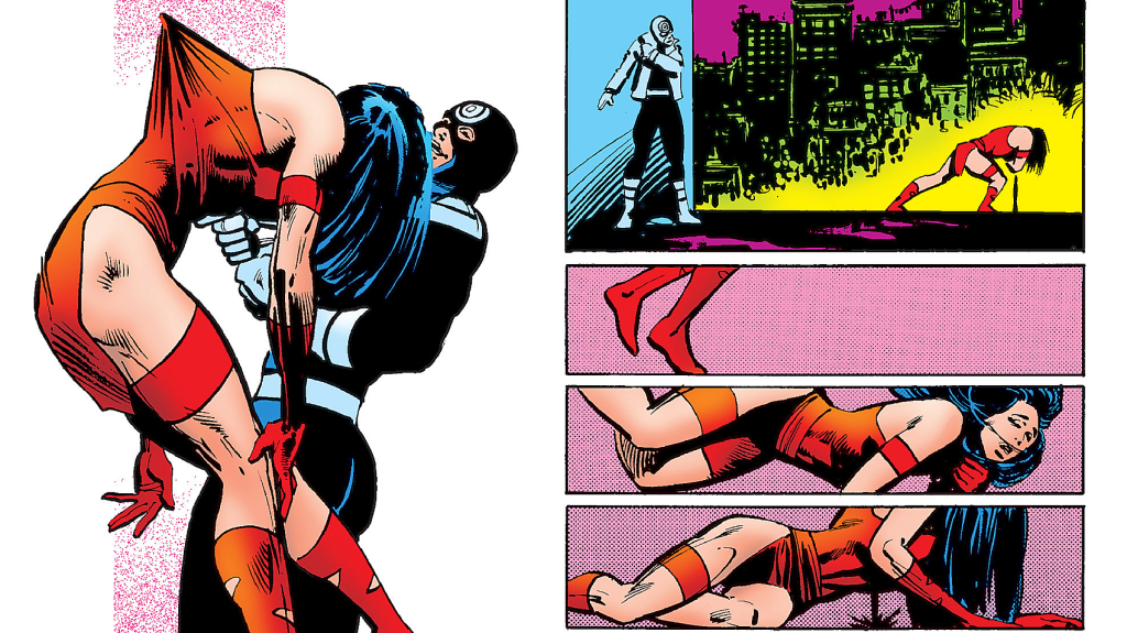 This, however, is not the case for the other main characters from Miller’s Daredevil. For instance, fandom’s early admiration for Elektra has grown more complicated over the years. While she was once praised as a much-needed depiction of a serious, deadly, and professional female superhero, she is now often viewed as an over-sexualized embodiment of classic femme fatale and tragic lover tropes. Notably, some critics have labeled her the epitome of the “fridging” trope — her value defined primarily by how her death advances Daredevil’s emotional development.
